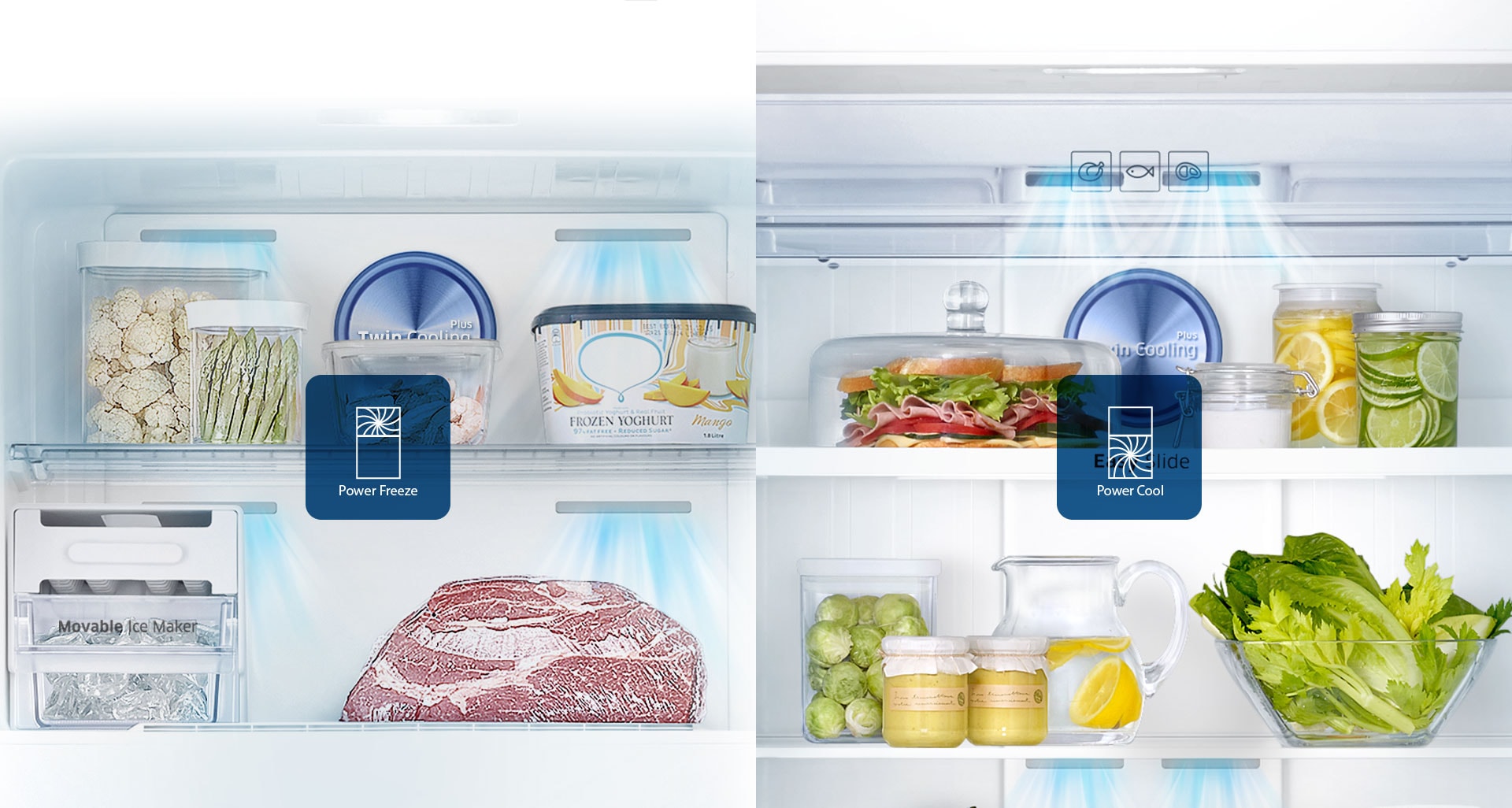 При открытии дверцы включается режим SuperCool, дополнительно снижающий температуру в камерах на 2°С. Режим активируется кнопкой, автоматическое отключение происходит через 6 часов. Для ускоренной заморозки продуктов в морозилке применена технология SuperFreezing. Образующийся на стенках лед автоматически удаляется блоком разморозки LowFrost, талая вода стекает через отверстие, выполненное на дне камеры.