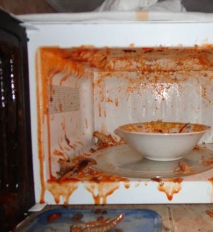 В микроволновке запросто может что-то сгореть, ведь как обычно бывает – поставили тарелку с бутербродом или попкорн на разогрев, и вышли из кухни по своим делам. В итоге, переборщив с таймером или мощностью, просто не уследив за пищей, может возникнуть тошнотворный запах гари.
